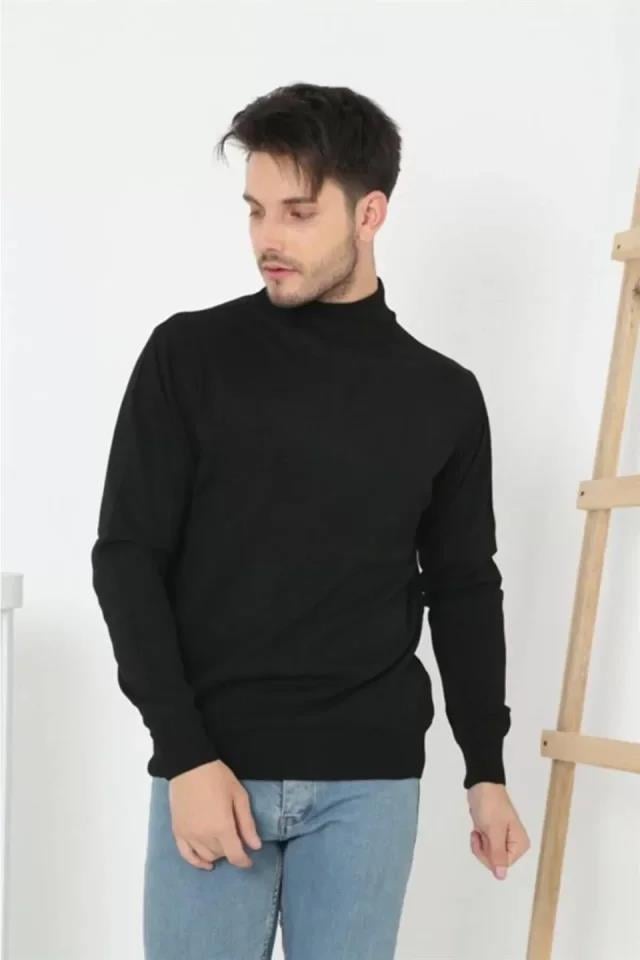 Erkek Yarım Balıkçı Yaka Triko Kazak - Siyah