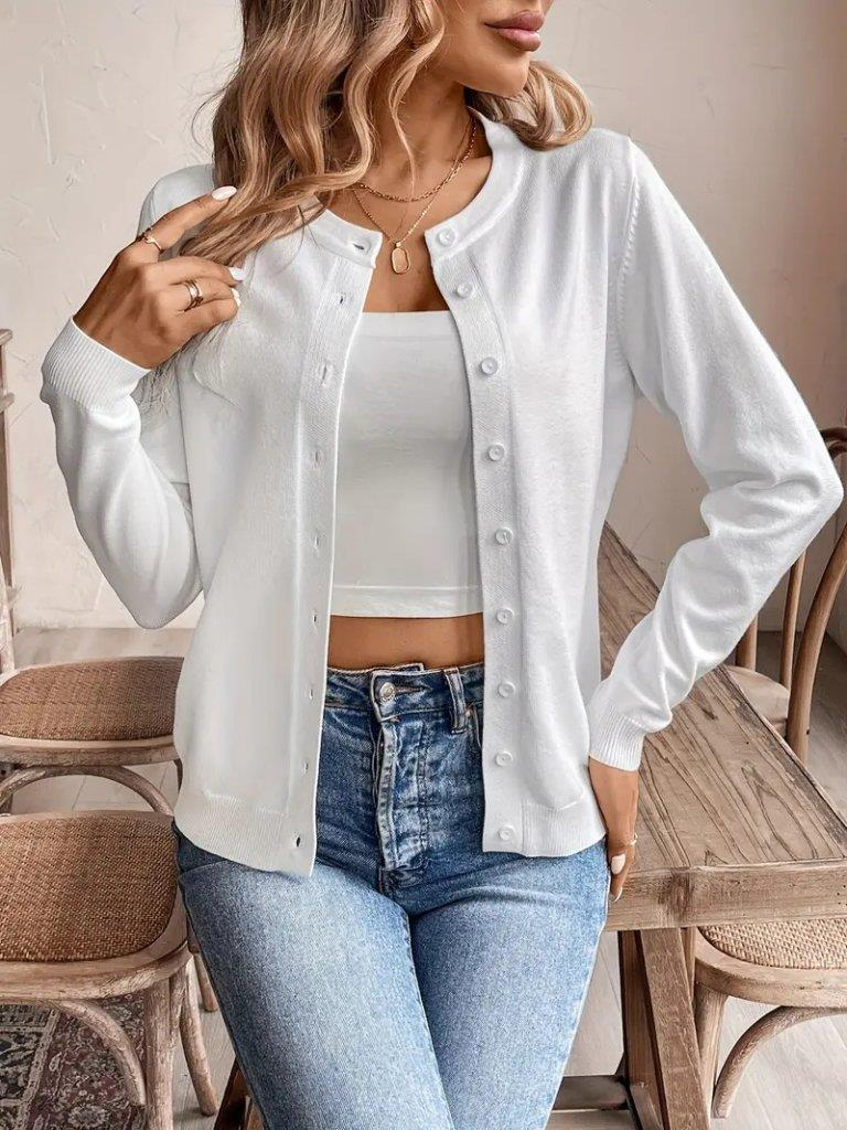 Kadın Uzun Kollu önden Düğmeli Triko Ceket